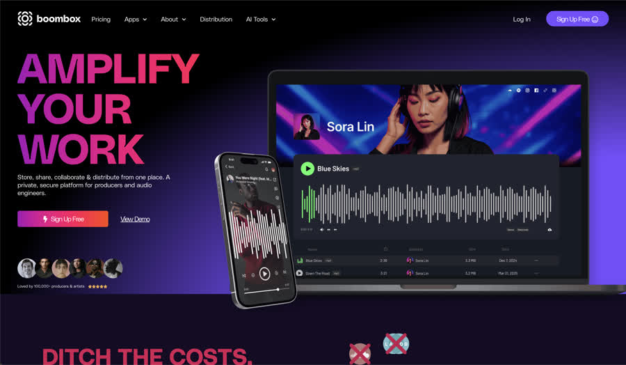 An all-in-one platform combining audio collaboration, music distribution, and AI tools.