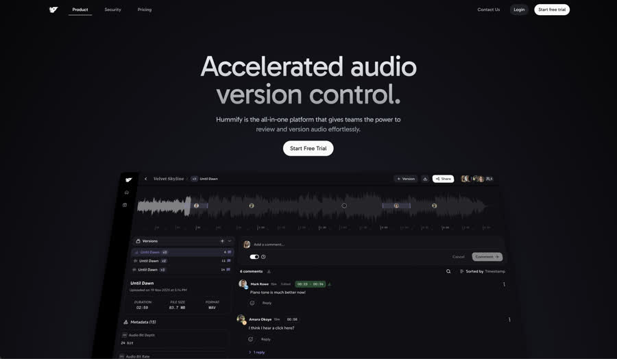 Hummify is a strong choice across the board: for independent musicians sharing work with collaborators, for composers and sound designers gathering structured feedback, and for labels, production houses, and agencies that need proper workspace governance. The platform scales from a single user to a full organisation without requiring a change in tools or workflow.