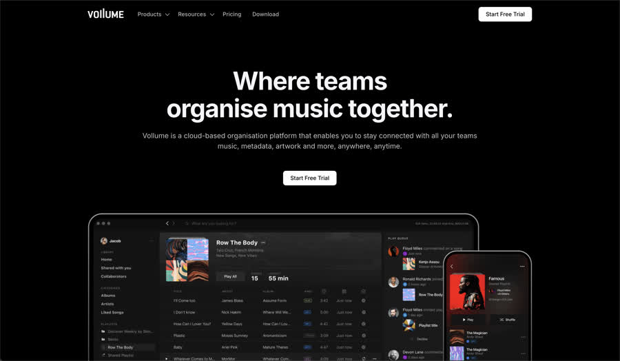 Vollume positions itself as an organisational hub for music, metadata, and creative assets. It supports teams and labels with a platform that emphasises cross-device access, secure file management, and collaborative organisation.